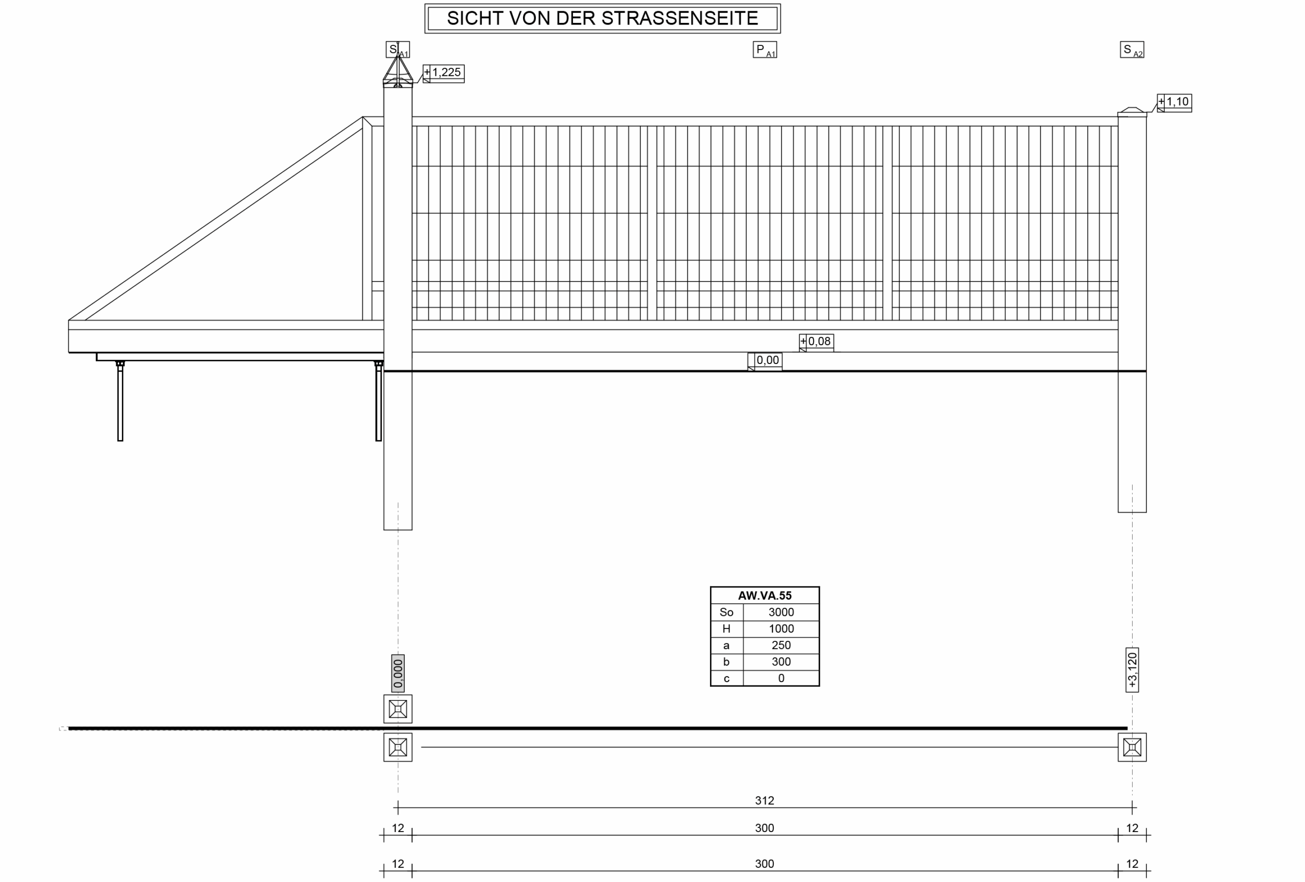 linkes Tor – Schiebetor öffnet nach links von Strassenseite gesehen