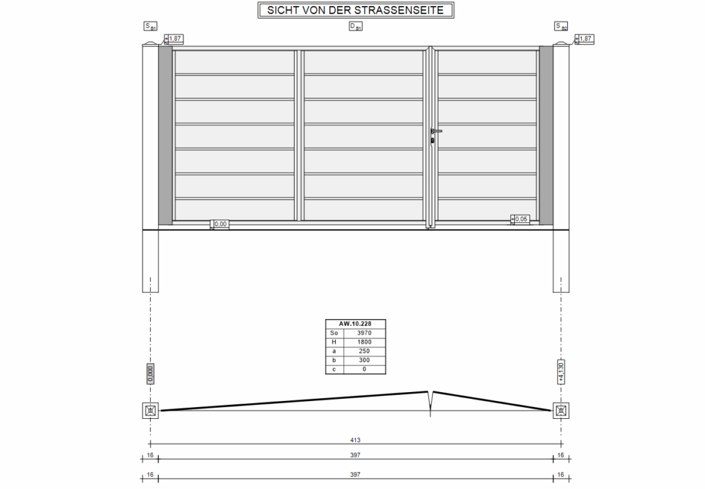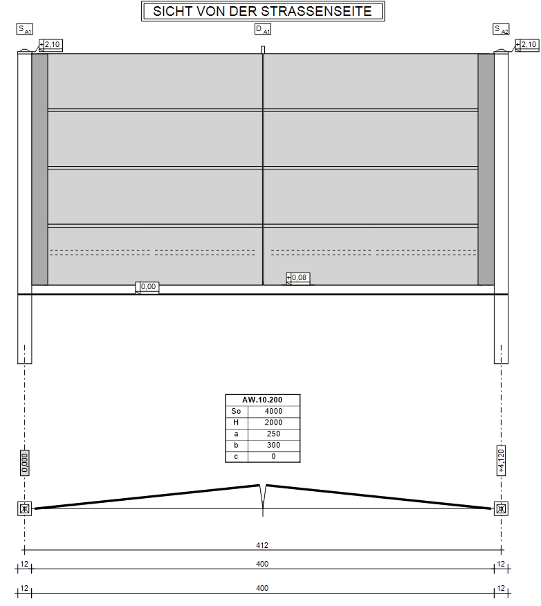 Torbreite 4000 mm inklusive Scharniere, (lichtes Maß zwischen Pfosten).